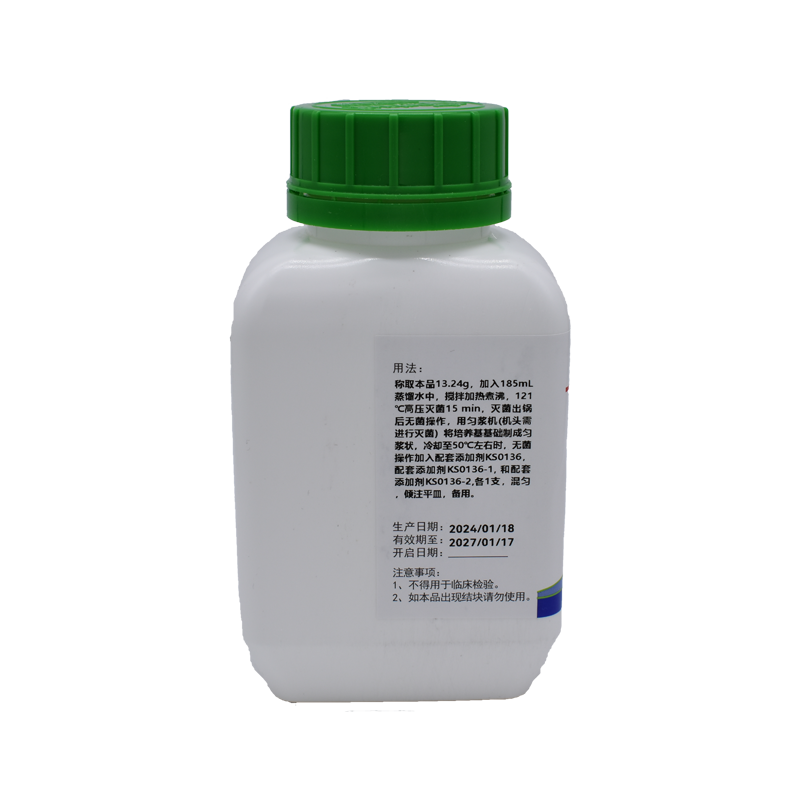 2、培養(yǎng)基應置于避光、干燥處保存,使用后應立即旋緊瓶蓋,以免吸潮結(jié)塊。