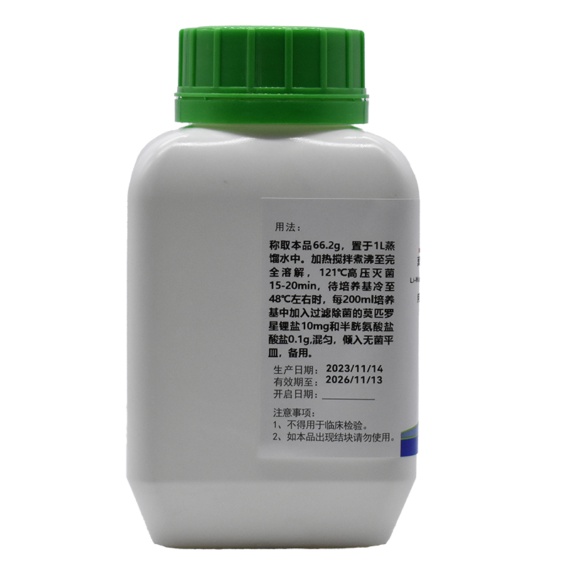 2 、培養(yǎng)基應(yīng)置于避光、干燥處保存,使用后應(yīng)立即旋緊瓶蓋,以免吸潮結(jié)塊。