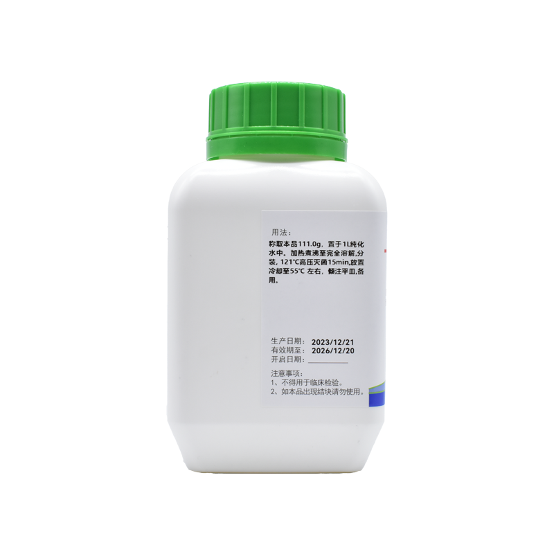 使用方法 | 稱取本品111.0g,置于1L純化水中。加熱煮沸至完全溶解,121℃高壓滅菌15min,放置冷卻至55℃左右,傾注平皿,備用。 | 拆開包裝即可使用 | 拆開包裝即可使用 |